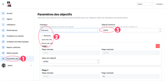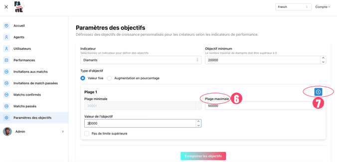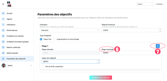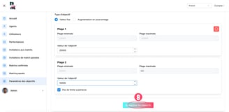 Si vous décochez "pas de limite maximale" vous pouvez déterminer des niveaux, et personnaliser les objectifs en fonction du niveau. Déterminez une valeur maximale pour ce niveau et cliquez sur le + bleu pour créer un nouveau niveau