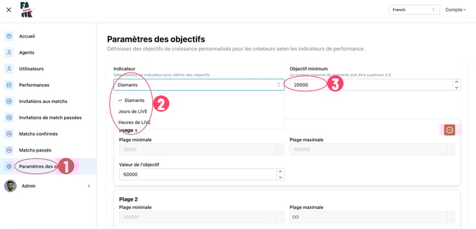 Pour les diamants, choisissez entre un objectif fixe, ou un pourcentage de croissance.