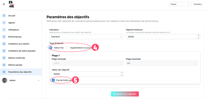 Une fois les objectifs déterminés, il suffit de sauvegarder.